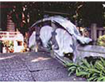 宝暦6年(1756)、東淀川区にある瑞光寺と紀州太地との関わりから、高欄の骨を便った珍しい橋がつくられた。現在の高欄は昭和49年に太地町の協力でつくられたもので、5代目になるという。